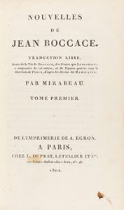 1802. LIBRO : (LITERATURA). BOCCACE, JEAN : NOUVELLES DE... Paris : Imp. A. Egron, 1802. 4 vol. en 8º mayor.
