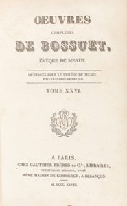 1828-1830. LIBRO : (LITERATURA). BOSSUET : ŒUVRES COMPLÈTES. Paris : LIbr. Gauthier Frères, 1828. 48 vol. en 8º mayor.