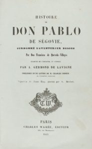 1845. LIBRO : (LITERATURA). QUEVEDO-VILLEGAS, FRANCISCO : HISTOIRE DE DON PABLO DE SÉGOVIE, SURNOMMÉ L´AVENTURIER BUSCON. Paris : Éd. Charles Warnée, 1845, 8º mayor.