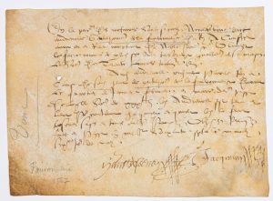 FAUCONNERIE. 1567 - Quittance de Nicolas VONC dit Andrenelle Gentilhomme de la Fauconnerie, pour ses appointements de son état de Gentilhomme de Fauconnerie pour les quartiers de janvier février et mars - Fait et passé en 1567 - Parchemin (19 x...
