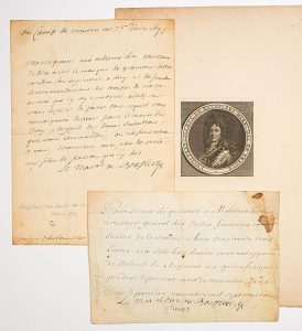 Louis François, Duc de BOUFFLERS, Maréchal de France en 1693 – 3 pièces (2 Lettres Signées et 1 gravure)