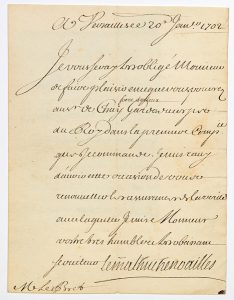 Anne Jules, Duc de NOAILLES, Maréchal de France en 1693 – Lettre signée « Le Mal Duc de NOAILLES », à VERSAILLES le 20 Janvier 1702 – à M. LE BRET Intendant de PROVENCE -
