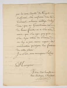 (AISNE) SOISSONS le 3 Sept. 1747. Lettre signée Charles Blaise MELIAND Intendant de la Généralité de SOISSONS, au Maréchal de BIRON. Lettre de 2pp in-folio concernant un Gentilhomme ne convenant pas aux fonctions de Lieutenant des MM. Les...