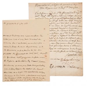 ─ P.S. « Le Comte de TONNERRE » Colonel du Régiment d’Infanterie d’ANJOU (Futur maréchal) – Fait à Neuf-Brisach ce 15 Avril 1723 - Certificat et Congé absolu pour le Sieur De PRERAYMOND Capitaine audit Régiment. Il sert depuis l’année 1690 savoir 3 ans en qualité de Cadet au Régiment de LA CHÂTRE,… Lieutenant au Régiment d’ANJOU, en 1700 et Capitaine en 1706,… s’étant distingué dans toutes ses actions où s’est trouvé ledit Régiment. Il a été blessé à l’assaut de BARCELONE d’un coup de fusil à la tête,… nous lui avons donné le présent Certificat pour lui servir à obtenir les grâces du Roi en récompense de ses longs services. » 1p in-4°.
