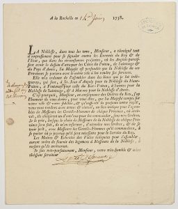 « Dans les circonstances présentes, où les Anglais paraissent avoir le dessein d’attaquer les Côtes du Poitou, de Saintonge & du Pays d’Aunis… » -