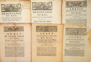 ─ Ordonnance du Roi portant Règlement sur la Police à observer sur les Routes par les Postillons de Poste, & les Rouliers, Chartiers, & autres Voituriers.” - du 4 Février 1786 - Impr. à LILLE, 4pp in-4°.