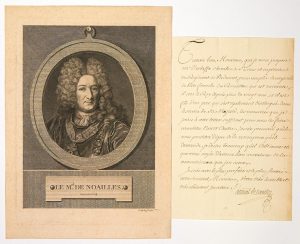 Louis, Duc d’Ayen et de NOAILLES, Maréchal de France en 1775 - (1713 - 1793). Lettre et Gravure.