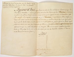 pour le Sieur MARTEAU ci-devant Conseiller du Conseil Supérieur d’ARRAS (62) crée en 1771 et supprimé au mois de novembre 1774 –Vélin (24 x 32) –