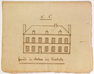 CHER. CHÂTEAU DE RIMBERTS. Cahier in-4°, fin XVIIIe S., contenant 4 plans extérieurs et intérieurs du Château de RIMBERTS. (Sur la route de LUNERY (18) à Châteauneuf, dans le bois, se trouve le Château de Rimberts.