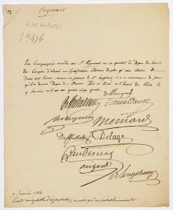 « La Compagnie accorde au Sieur PEYRONNET en sa qualité de Doyen des Commis des Comptes d’années une gratification ordinaire de plus qu’aux autres.