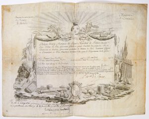 Versailles le 8 mai 1784 - Beau brevet décoratif, finement gravé, 1p in-folio oblong sur vélin –