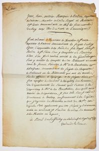 Lettre signée à bord du Vaisseau « LE RÉFLÉCHY » en rade du FORT ROYAL (Martinique) le 15 Décembre 1785.