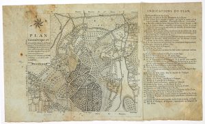 Levé par moi géomètre de la Ville de FALAISE (14) ce 25 avril 1786. LEFEBVRE. Gravure (22 x 26), avec indications du plan : (Château, Eglise, Moulin, Domaine fieffé,…)