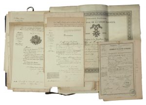 ─ Certificat de bonne conduite du 1er Régiment de cuirassiers de Belfort 1869 ; Nomination de Chef de Bataillon 1889 ; Brevet de légion d’Honneur Paris 1899. Certificats et papiers militaires.