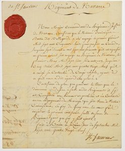 (CANADA.) Pièce signée SAINT SAUVEUR Major Commandant du Régiment d’Infanterie de NAVARRE ; Certificat de services fait à ROUEN (76) le 16 sept. 1789, délivré à Dominique BERTIN dit BELLEGARDE, qui a été engagé en 1758 pour passer au...