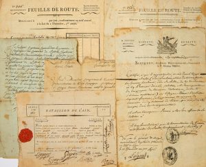 PAPIERS MILITAIRES d’Étienne BARBASA, Caporal, canonnier, natif de Grenoble (Isère). 6 pièces :