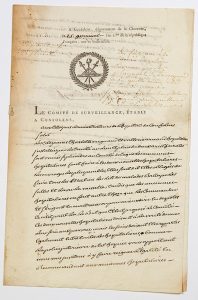 CHARENTE. 1794. COMITÉ DE SURVEILLANCE à CONFOLENS – Lettre signée par 5 membres du Comité de Surveillance, établi à CONFOLENS (En tête imprimé, vignette) - Aux citoyens administrateurs de l’Hôpital de CONFOLENS (adresse) - Confolens...