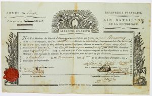 ROCHEFORT (17). 1795. ARMÉE DE L’OUEST, Infanterie Française - CERTIFICAT D’OFFICIER pour le Citoyen Jean BONNAMY natif de CHATILLON (Indre et Loire) Capitaine des Grenadiers du 12° Bataillon de la République,