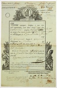 (FINISTÈRE) CONCARNEAU 27 Fructidor An 7 (13 Sept 1799) - Congé de Soldat de la Colonne mobile du FINISTÈRE, Formation de QUIMPER. 1p grand in-folio - Illustré de soldats –