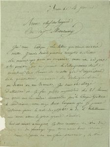 « …J’ai reçu ; Citoyen, la Lettre que vous m’avez écrite…On ne permet le débarquement des marchandises venant de ROSETTE qu’à l’expiration de la quarantaine…J’ai donc été obligé d’attendre et je fais partir aujourd’hui les 25 hommes …Ils conduisent avec eux huit barques…dont nous avons le plus grand besoin. … Je vous remercie du Vin et du fromage que vous avez bien voulu donner peine de me faire parvenir. Le Vin qui nous a été remis …est si mauvais que j’ai été obligé de le revendre…Je désirerai si c’était possible qu’il fut blanc, et muscat pareil à celui que j’ai goutté ici et qui a été apporté par un Marchand Sauvage. Si cela ne se peut, je me contenterai du rouge, mais je voudrai que la barrique fut de plus de 100 Bouteilles…Le Général LECLERC (LECLERC D’OSTEIN) me charge de vous prier de lui acheter 25 livres de Tabac à fumer…On me dit que l’on trouve à ROSETTE du fil Blanc fin et bon pour des Bas ; si cela est, je vous prie de m’en faire l’emplette … » -