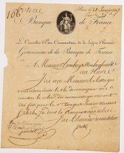 Il accuse réception à la Famille HOMBERG Frères établie au Havre du relevé des versements (des loteries) qui ont été faits pour le premier tirage de Janvier et qui leur a été débité par la Banque de France.