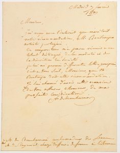 “J’ai reçu avec l’intérêt que méritait votre recommandation, M. BONTEMPS artiste portugais. Ce compositeur m’a paru réunir à un talent distingué, de la modestie et de la discrétion en société. Je lui ai promis différentes lettres pour Paris...” –