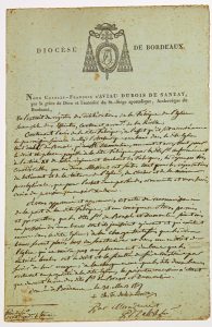 DIOCÈSE DE BORDEAUX (33). Pièce Signée « Charles François d’AVIAU DUBOIS DE SANZAY, Archevêque de Bordeaux » (En-tête impr., vignette) - Donné à BORDEAUX le 31 mars 1807. 1p in-folio.