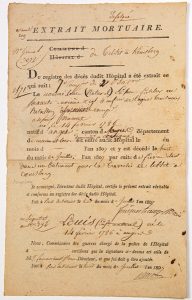 (GRANDE ARMÉE. 1807. CAMPAGNE DE PRUSSE.) - Extrait mortuaire du nommé LOUIS (Enfant naturel) Fusilier au 71e Régiment d’Infanterie de Ligne, né le 14 Février 1786, à ANGERS (Maine et Loire), décédé par suite de fièvre étant dans le...