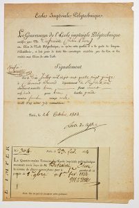 « ÉCOLE IMPÉRIALE POLYTECHNIQUE. » (En-tête.) - Pièce signée Jean-Girard LACUÉE, Comte de CESSAC (Ministre d’Etat) en tant que Le Gouverneur de l’École Impériale Polytechnique. Paris le 26 Octobre 1813.