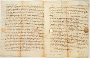 "... M. de Dampierre m'a remis 6 exemplaires imprimés de la pétition et le manuscrit de vos réflexions. Je vais vous envoyer tout cela avec ce qu'il faut pour votre école....""Vos réflexions sur le système d'Emprunt et de crédit et sur le cadastre sont d'une parfaite justesse"..." Il faut que les amis de l'ordre et de la Liberté se réunissent et s'entendent; ces liens commencent à se former; vous savez que toute mon ambition est d'y mettre un anneau...." " On s'occupe déjà d'élections, on cabale de tous cotés, le Ministère se démène, mais j'espère qu'il perdra en électeurs, une partie de ce qu'il a gagné en vendant notre Emprunt aux Anglais. Si vous avez des relations dans la Haute Saône recommandez y MM. de GRAMMONT et MARTINH de GRAY Députés actuels..."