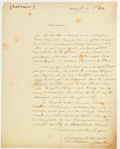 Jean Louis DUGAS DE BEAULIEU Avocat et Archéologue, étudie la Lorraine. (Nancy 1788 – Paris 1862) 2 Lettres autographes signées de NANCY (54), in-4°, à un Cher Confrère.
