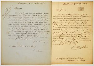 Guillaume de FELICE, Pasteur, Théologien et Historien protestant - On lui doit une “Histoire des Protestants de France.” (Ottersberg 1803 – 1871)- 2 Lettres A.S. à MM. TRENTTEL & WÜRTZ Libraires rue de Lille n°17 Paris (adresse) - 2pp...