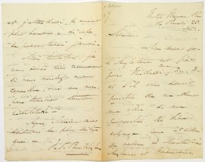 « Monsieur, Mon départ pour l’Angleterre est fixé pour Vendredi 3 Décembre, et s’il vous serait possible de me donner une idée, si ma proposition de LIBRE-ÉCHANGE pour 25 Millions de valeur en marchandises anglaises et françaises sera accueilli par le Ministre des Finances ou non. »..