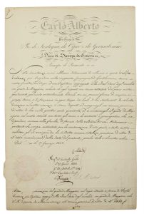CHARLES ALBERT, Duc de Savoie & de Genève (Turin 1798-1849) Roi de Sardaigne, de Chypre, de Jérusalem ; père de Victor-Emmanuel II – BREVET DE PENSION signé CARLO ALBERTO Roi de Sardaigne à son en-tête impr. (en italien) – TURIN, le 17...