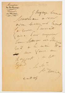 “J’engage Mr MARTINEAU à voir avec Mr LAVOCAT ce qu’on pourrait faire pour acquérir LES LETTRES DE L’EMPEREUR qu’il a en main et à me faire un rapport, à cet égard.” –