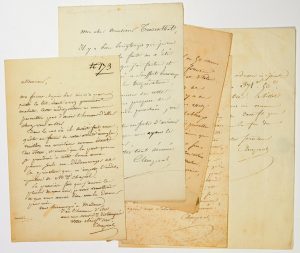 ─ 2 L.A.S. à Mr TREUNTHAL, rue Saint Louis, N°4, à VERSAILLES. Mardi, Sa femme malade, il ne peux se rendre à une invitation mais fait un don en faveur d’un Artiste malade. Invitation à Dîner rue d’Enfer, 33 -