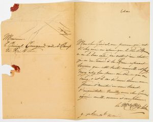 Maréchale MOUTON Comtesse de LOBAU (Félicité Caroline Honorine, comtesse d’ARBERG) Femme du Maréchal MOUTON Comte de LOBAU (1809), Dame d’Honneur - Morte en 1860 - Lettre A.S. “La Male Ctesse De LOBAU, au Général Baron GOURGAUD Aide de...