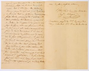 « Monsieur. Je suis Femme, pardonnez-moi de vous parlez de choses graves, d’un Journal organisateur. J’ai fondé et je dirige en partie, une feuille qui surtout défend les intérêts sociaux, la Paix des deux mondes. Ce titre, souvent incompris, passe aux yeux de quelque uns, pour prétentieux. Nous avons exprimé par un nom notre pensée. Nous blâmeront-on de chercher à donner à tous le bonheur par la Paix ? Quoi qu’il en soit, Monsieur, nous sommes dix rédacteurs unis pour un seul vœu, animés du même esprit. Les uns sont plus et d’autres moins capables peut-être, tous veulent la même chose et se sont donné le même but à atteindre. Un surtout, homme jeune d’âge et mur de pensées, a formulé tout un système de gouvernement fondé sur le principe de l’utilité. Il veut produire ses doctrines, mais il a besoin de l’appui d’un grand nom pour le faire avec confiance. De la Suisse où il est maintenant, il m’a prié de vous demander s’il vous conviendrait de patronner de nom et de fait notre journal. Si par les quelques numéros que j’ai l’honneur de vous adresser vous éprouvez des sympathies pour notre œuvre, un autre plus éclairé que moi, vous fera connaître nos principes et leurs moyens d’application. Je fais des vœux pour que vous nous soyez acquis et dans cette espérance je me dis, monsieur, avec la plus profonde estime… »