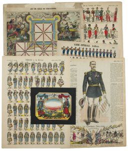 SECOND EMPIRE & Divers. 9 PIÈCES IMPRIMÉES : ─ 6 images d’Épinal ou de Metz (env. 40 x 29) :