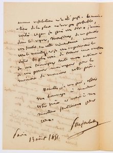 “... l’Administration hésite sur le poste à prendre relativement au poste rendu vacant par la mort par la mort de M. DUPATY. Le Conservatoire, comme vous savez sans doute, conseille la suppression de l’emploi, en demandant que le traitement serve à augmenter les honoraires des pauvres gens employés qui travaillent beaucoup sans rémunération suffisante...” - 2pp in-8° -