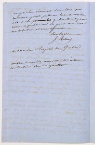 “Je viens, mon cher ami, de lire votre magnifique compte rendu “Des Traditionnelles”. Je ne sais vraiment que vous dire : vos éloges m’effraient. Je ne puis, d’après le caractère que vous voulez bien me donner, accepter que la partie de votre article ou seule votre noble amitié à la parole. Là je me réjouis à l’aise non que le poète ne conserve comme tout autre quelque chose du vieil homme et qu’il ne se soit un peu senti chatouillé de se voir compris; mais soyez sur, que son laurier, si laurier il y a, sera toujours assez grand s’il peut conserver à son ombre des affections comme la vôtre Il se passe des choses tristes, mais vous n’êtes pas un de ces hommes à défaillance. Vous savez que l’heure des forts est celle de l’épreuve aussi du courage...” -