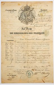 GENÈVE (SUISSE) 11 Mai 1860. PASSEPORT délivré par le Consulat de France à Genève, au Nom de l’Empereur Napoléon III, pour M. BALSENC Maître Mégissier, né à St JEAN DE BRUEL (Aveyron), demeurant à Genève, allant à ODESSA (Autriche).