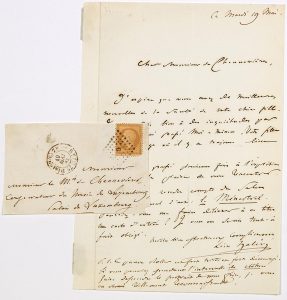 Léon HALÉVY, Poète et Littérateur (Paris 1802 – 1883) Lettre A.S. à M. le Marquis de CHENNEVIÈRES, Conservateur du Musée du Luxembourg, Palais du Luxembourg – Paris 19 Mai 1863 – (1p in-8° ─ devant d’enveloppe) – Il prend des...