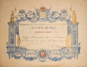 AVIGNON (84). CONSERVATOIRE DE MUSIQUE. Concours de 1863 & 1864 – 2 Diplômes lithographiées par A. CHAUVIN à Avignon, remplis à l’encre –