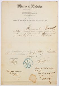 Lettre d’Embarquement pour Adolphe REVAULT Lieutenant de Vaisseau sur la Frégate cuirassée LA GLOIRE commandée par le Capitaine de Vaisseau MIQUEL DE RUI . Rade de TOULON (83), à Bord du SOLFÉRINO le 29 avril 1865 .