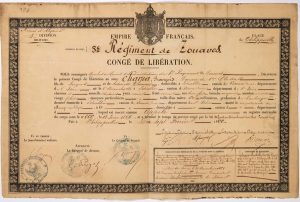 Congé de Libération pour François CHARPA Zouave de 1ère Classe natif de l’Isère, inscrit comme appelé - (Embarqué à Marseille 1859, débarqué à Philippeville le 26.