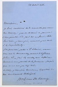 Maxime DU CAMP, Écrivain et voyageur, photographe, Acad. Fr., Ami de Flaubert. (1822-1894) Lettre A.S. 14 Avril 1876. 1p in-8° -