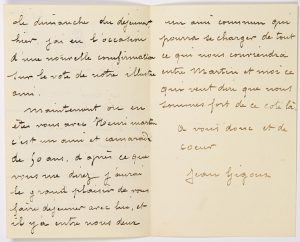 “Cher Ami. J’ai dîné hier chez Mr PASTEUR vous pouvez considérer Mr Gaston BOISSIER comme un bon esprit qui votera pour vous tout aussi bien que Mr Pasteur...Maintenant ou en êtes vous avec Henri MARTIN. C’est un ami et camarade de 50 ans...” –