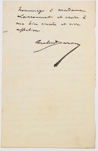 “Cher Ami. Vous me ferez un grand plaisir en venant me voir et je serai heureux d’être présenté à Madame LARROUMET et honoré de sa visite à mon atelier... Je serai à mon Atelier demain Mardi et Jeudi jusqu’à 11 Heures. Mercredi je ne suis pas libre étant forcé de courir dans Paris..” –
