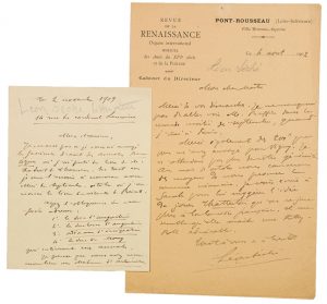 ” 4 Août 1902 - 1p in-8° ─ 2 Nov1909, 1p in-12° “..